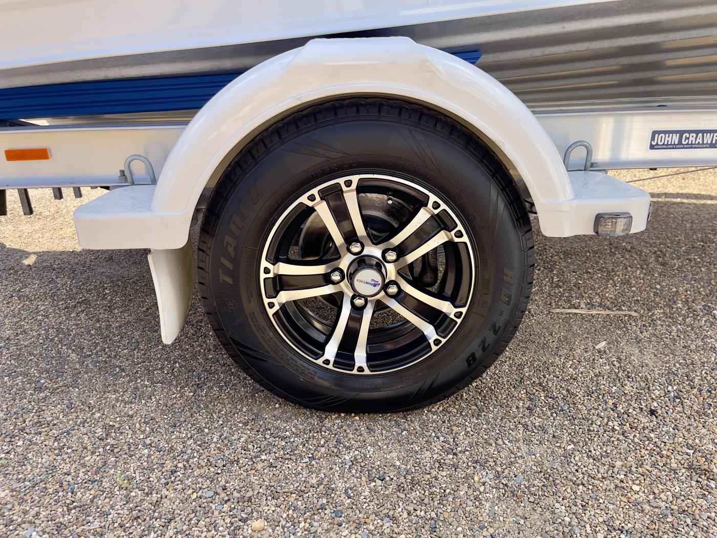 Trailering is made easy as the rig sits atop a Quintrex Alloy TEL1098B13 aluminium framed trailer that marries to the hull like a glove. Dressed with white plastic guards and side lights, looking smart whilst sitting still and more importantly like all trailers sold through JCM regardless of age, they are workshop tested/serviced and adjusted to provide you towing confidence.