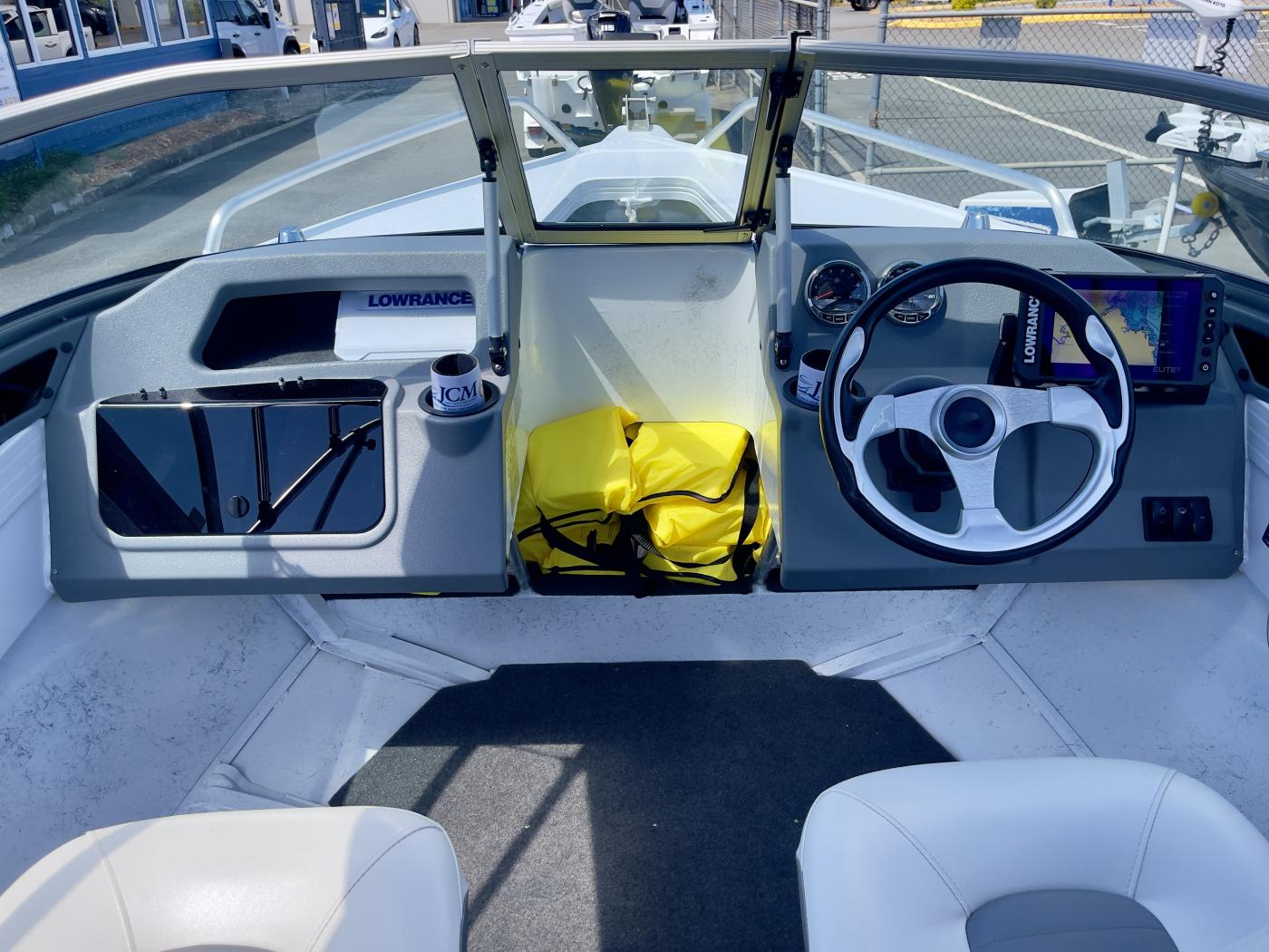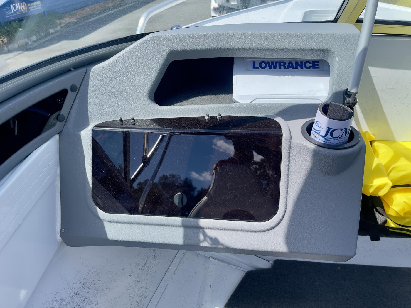 The dash is well laid out with factory instrumentation for the outboard, a Lowrance Elite FS7 colour screen combo sounder/GPS, that the angler in the family will love to use.